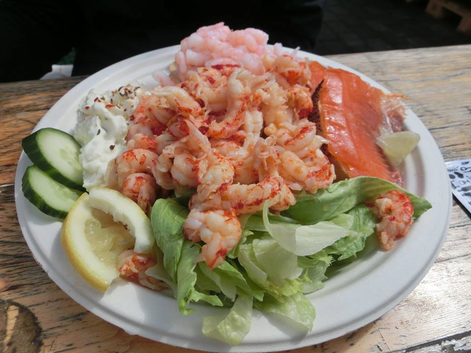 お昼は魚市場でシーフードサラダとシーフードスープ、