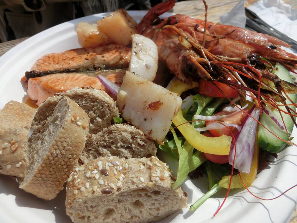 シーフードのグリルプレート3人でシェアして合計75ユーロ。