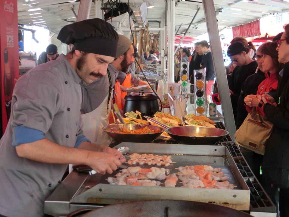 広場にある魚市場の屋台。