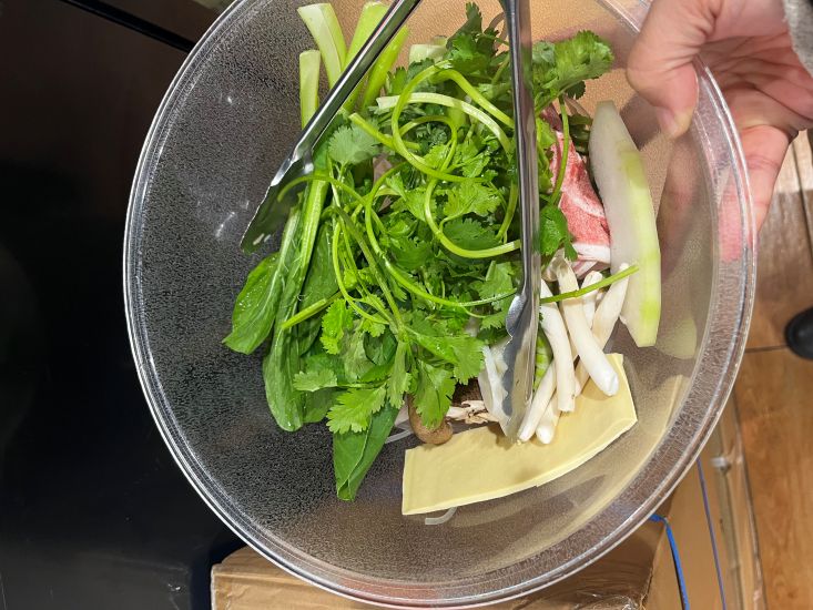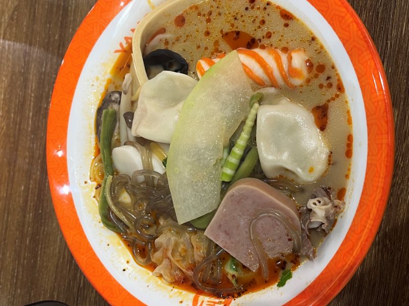 白きくらげ、スパム、筍、干し豆腐、ラム肉、水餃子、