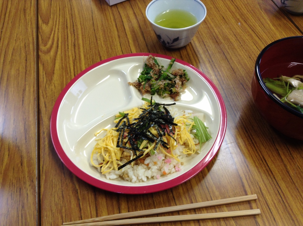 ちらし寿司をしました。ご飯と吸い物はこちらで準備し、